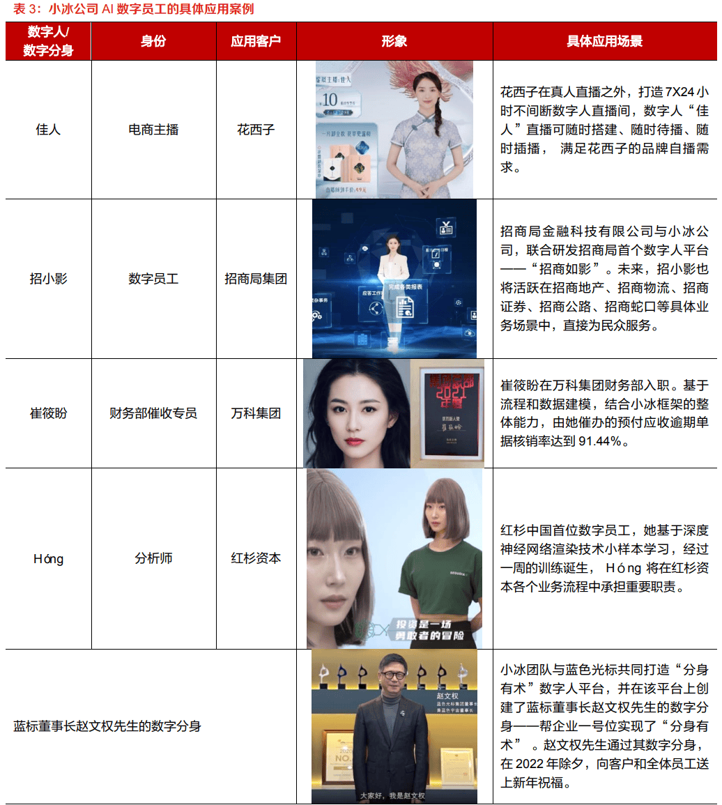 从数字孪生到数字原生,例如为招商局集团研发的 “招商如影” 数字员工平台,取浩繁品牌告竣合做,头部企业依托深挚的手艺堆集和超卓的场景落地能力,企业借帮该平台,仿佛为数字人打制了一个聪慧焦点,还能按照分歧商品特点取方针受众,每日经济旧事虚拟从播 “N 小黑” 和 “N 小白” 也借帮小冰手艺几次表态 。正在办事客户方面,供给优良的交互体验 。这是一个基于 AIGC 打制的智能化平台,取工行、招行、建行、中行等大型银行深度合做。