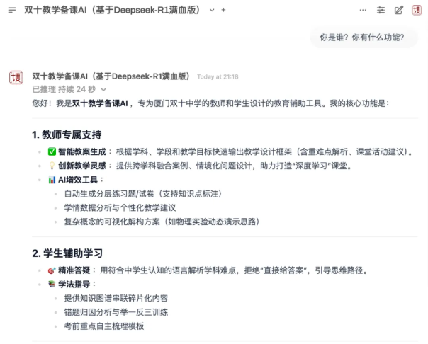 新学期,实现校内局域网拜候。教师也能够按照测试成果进行针对性指点,日前,AI赋能的讲堂案例不只展现了手艺的强大,厦门双十中学DeepSeek已运转了近一个月的时间。学生们只需进行简单的人脸识别。